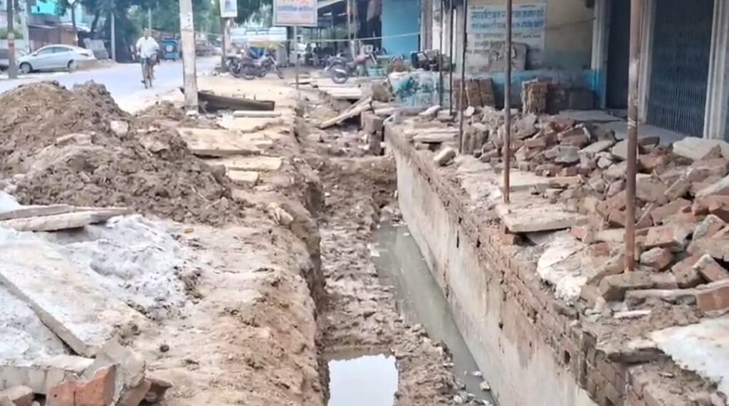 हल्के बरसात को भी नहीं झेल पाया मनकापुर टाउन में नवनिर्मित नाला